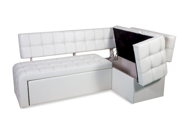Под короткой частью этого углового дивана расположен вместительный ящик для хранения.
