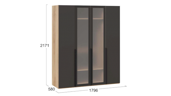 Шкаф для одежды 580 с 2 глухими и 2 стеклянными дверями Порто СМ-393.07.116 (ТриЯ)