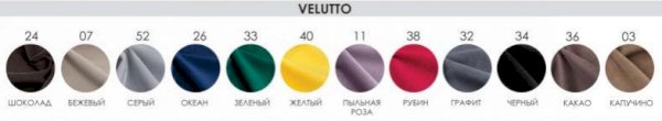 Обивка: Ткань (Велюр Боска), Ткань (Велюр Velutto), Ткань (Велюр Nova), Ткань (Велюр Grand), Кожзам