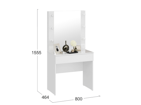 Помимо внешней привлекательности, стол достаточно вместителен. Конструкцией предусмотрена просторная столешница со стеклом и практичный ящик под ней, где можно разместить все необходимые аксессуары и косметику. Стол имеет достаточно большое зеркало, а наличие подсветки обеспечит комфортный уход за собой, которая дает ровный и мягкий свет.