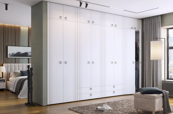 - Фрезеровка на фасаде в виде вертикальных полос создает изысканный акцент и добавляет шарма к общему дизайну.