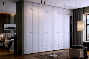 - Материалы корпуса: лдсп белого дерева, фасады из МДФ облицованы матовой пленкой ПВХ, что придает шкафу элегантный и современный вид.