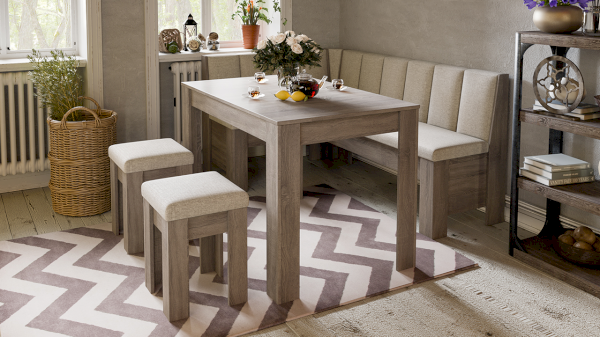 Банкетка изготовлена из ЛДСП 16 мм, в цвете «Дуб сонома трюфель» - один из самых популярных вариантов отделки мебели в современном интерьере. Данный оттенок привносит теплоту, элегантность и уют в любое помещение. Для мягкости применяется практичный наполнитель ППУ, который имеет высокий уровень влагообмена и воздухопроницаемости. Обивочный материал – Capri — универсальная рогожка, состоящая из мелкофактурного переплетения однотонных и меланжевых нитей. Тест Мартиндейла: 30 000.