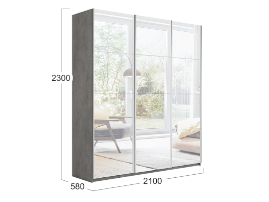 Трехдверный шкаф-купе с 3 зеркалами Траст 2100 (Трия)