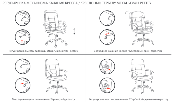 Тип механизма кресла: "топ-ган" качание с регулировкой под вес и фиксацией в 1 положении