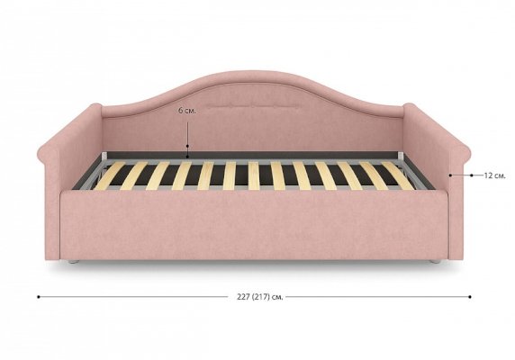 Кровать для девочки с изысканным изгибом спинки и округлыми формами подарят вашему ребенку волшебные мгновения сна. Разнообразие вариантов обивки сделает кровать неповторимой. Модель изготовлена из ДСП. В комплект кровати для девочки входит кроватное основание без опор. Каркас основания выполнен из металла, ламели - из берёзы.