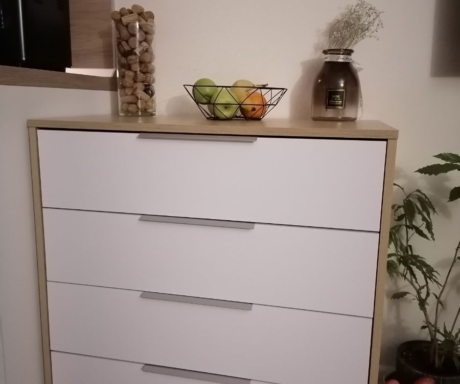 Комод пришел быстро, все целое без значительный сколов. Не было креплений и комментариев по сборке верхней части комода. Докупали крепления ( так называемые уголки). Ну а в целом комод для своей цены очень приличный.