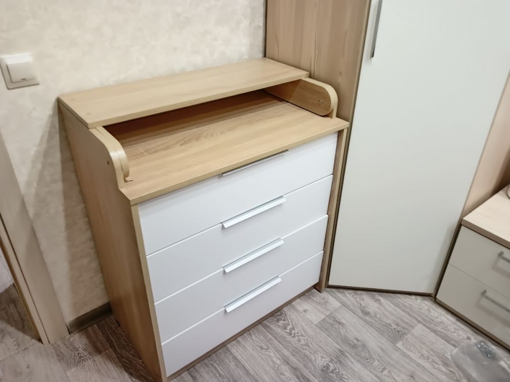 Хороший комод, заказали для малыша, но пока не установили пеленальную часть, в окружающую обстановку вписался отлично. В целом собирать было довольно непросто, потому что редко этим занимаемся. Но по инструкции все довольно понятно. На мой взгляд, маловато саморезов для фиксации ящиков и стенки комода, будем дополнительно докупать. Не могу сказать, что комод супер качественный и долговечный, но за свои деньги (<7000₽) это просто подарок. Рекомендую продавца и его товар.