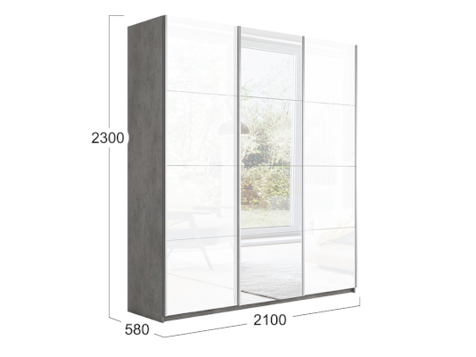 Трехдверный шкаф-купе с 1 зеркалом и стеклом Траст 2100 (Трия)