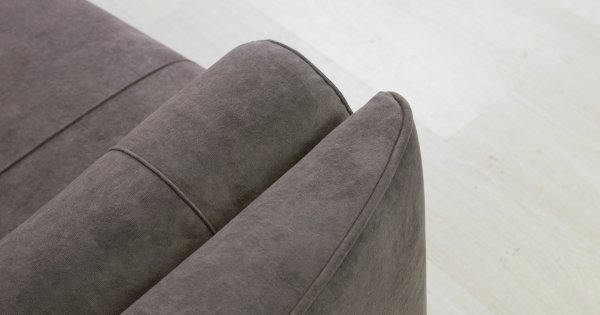Кант на торцах приспинyых подушек, сиденья и подлокотников. Защипы на сиденье и приспинных подушках. Две декоративные подушки-валика с защипами.