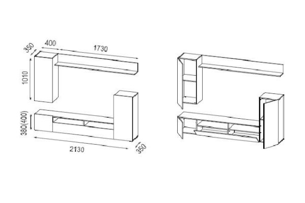 Ширина ниши под ТВ: 1330 мм