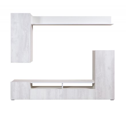 Шкаф «Прага-3» подойдет как для небольшой по габаритам гостиной, так и для просторной. Вместительная тумба под ТВ оснащена двумя открытыми нишами, закрытыми секциями с распашными дверьми по бокам и закрытой секцией с откидной дверью посередине. Навесной шкаф оборудован полкой из ЛДСП, выдерживающей вес до 5 кг. Открытая полка вместительна и устойчива, она придаёт законченный вид композиции в целом.
