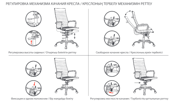 Тип механизма кресла: "Deep Tilt" - механизм глубокого качания с регулировкой под вес и возможностью фиксации в рабочем положении