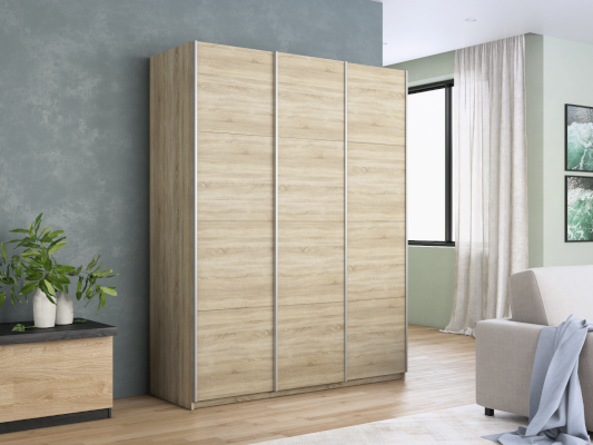 Серия «Прайм» отличается доступностью и функциональностью Навесные двери и лаконичная отделка фасадов создают прогрессивный дизайн. Подойдет тем, кто любит компактную и изящную мебель. Алюминиевые ручки и верхний ходовой профиль обеспечивают легкость и прочность конструкции. Многолетняя безупречная работа благодаря высококачественной немецкой фурнитуре Hettich. Прочная ПВХ-кромка толщиной до 1 мм защищает края от сколов и повреждений. Плавный ход дверей обеспечивает надежная система Hettich Top Line M. Дополнительно можно установить доводчики. Снаружи нет заглушек и винтов благодаря стяжечной системе крепления полок на флипперах, а корпус усилен эксцентриковыми стяжками. Навесные двери скрывают раздвижной механизм от глаз. Они надежно удерживаются в направляющих и не соскакивают. Каждая дверь поделена на 4 секции Секции расставляются в произвольном порядке, создавая новый дизайн фасада.