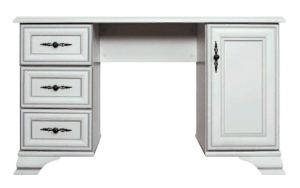 Туалетный стол Кентаки – удобная, красивая и высокофункциональная мебель, позволяющая обустроить стильный и комфортный интерьер в классическом стиле. Прекрасное решение для хранения косметики. Три выдвижных ящика и большое отделение на распашной двери предоставляют достаточно места, где можно разместить все необходимое. Также стол можно использовать как традиционный письменный.