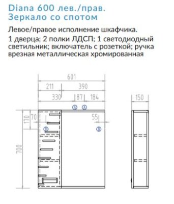 Размер: 600х700х150 мм (ДхВхГ)Материал: ЛДСП, ЛМДФ, зеркалоЦвет: белый, покрытие глянцевое