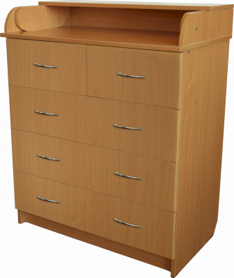 Комод Соня 80/5 имеет не только красивый вид, он функционален и эргономичен. В пяти ящиках вы сможете разместить не только детские вещи, но и средства по уходу за новорожденным: присыпки, крема, подгузники, а также постельное белье.