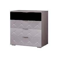 Комод Кимберли выделяется своим необычным дизайном, а именно черным фасадом верхнего ящика и стильными эргономичными ручками. Корпус модели выполнен в цвете светлого ясеня, а фасады оставшихся трех ящиков отделаны белым глянцем. Размеры комода позволяют разместить все необходимые вещи.