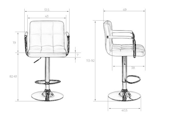 Высота сиденья: 610-820 мм